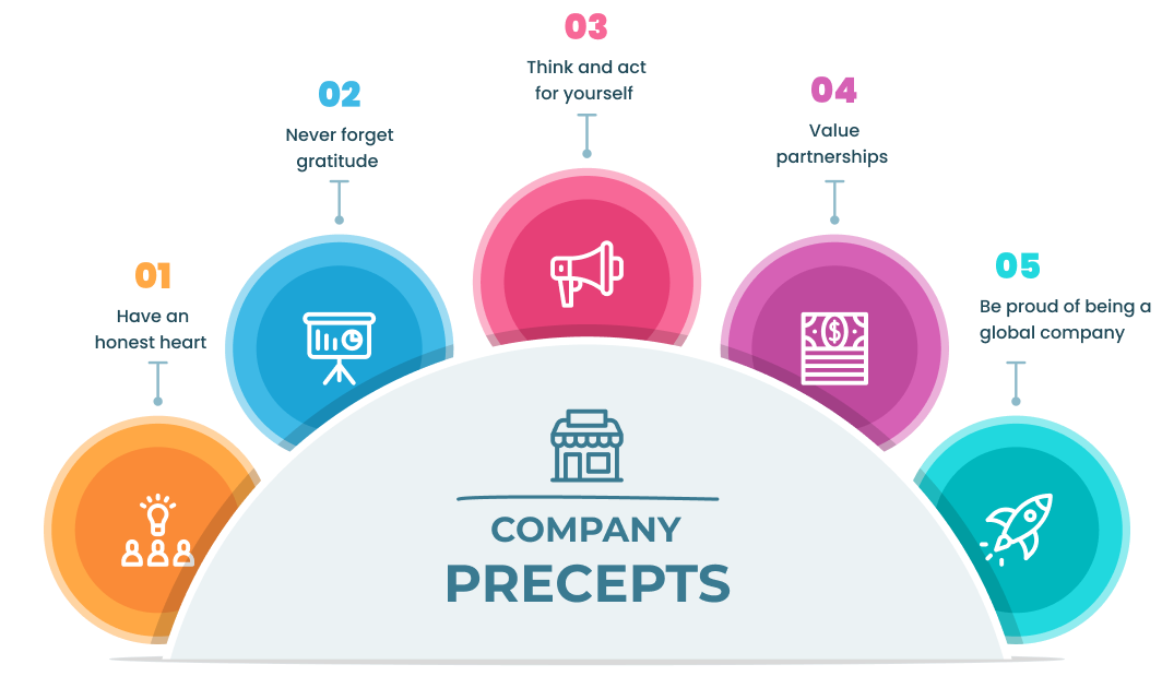 外向きではなく内向きのものであり、社員に常に心がけてほしい行動指針のようなものです。経営理念とは?